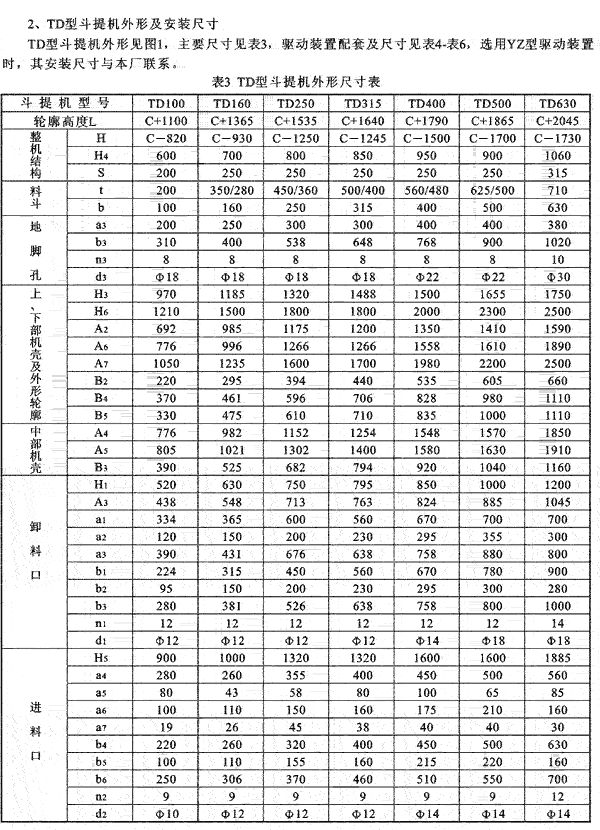 (2)TD型斗提機(jī)備有四種料斗Q型(淺斗)、H型(弧底斗)、ZD型(中深斗)、SD型(深 斗)