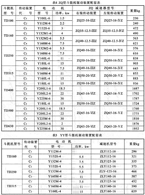 目前國內(nèi)常用的斗提機(jī)均為垂直式,較新型符合標(biāo)準(zhǔn)TB3926--85的有TD型、TH型它們的主要特征、用途及型號見表l